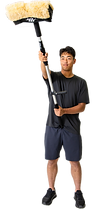 洗車作業中でも、ワンタッチでシャフトの長さを4段階に切り替え可能です。サイドグリップもネジ式で固定や調整ができるため、自在にポジションを変更できます。